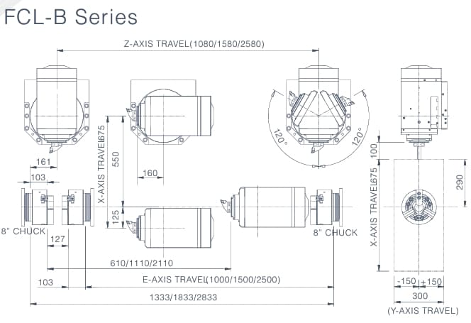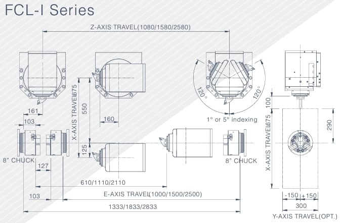 | E-axis travel (tool spindle) | 1050/1550/2550 | 1050/1550/2550 | 1050/1550/2550 | 1050/1550/2550 | 1050/1550/2550 | 1050/1550/2550 |