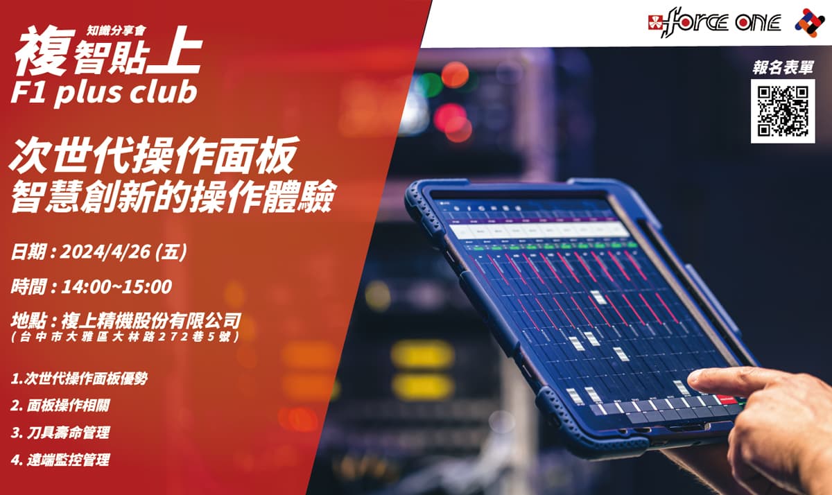 活动日期:2024 年 04 月 26 日( 星期五 )活动时间:14:00 ‒ 15:00活动地点:复上精机股份有限公司 (台中市大雅区大林路272巷5号) 报名表单:https://www.surveycake.com/s/Rvx2x