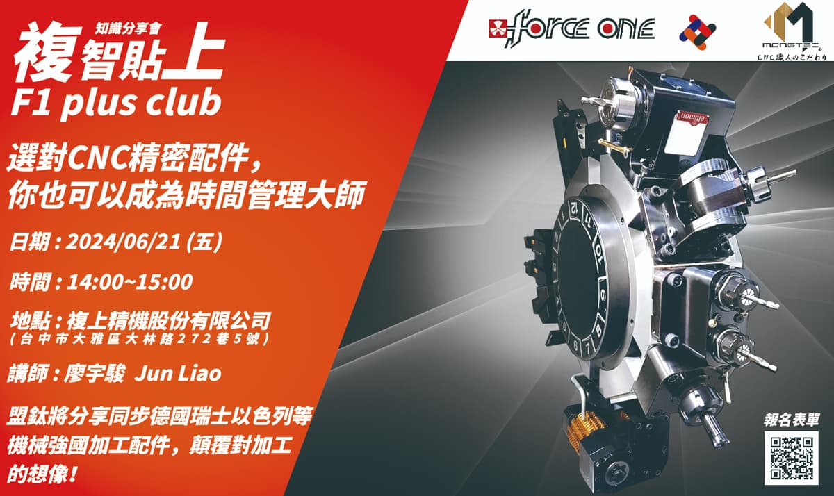 活动日期:2024 年 06 月 21 日( 星期五 )活动时间:14:00 ‒ 15:00活动地点:复上精机股份有限公司 (台中市大雅区大林路272巷5号) 报名表单:https://www.surveycake.com/s/a3GDv